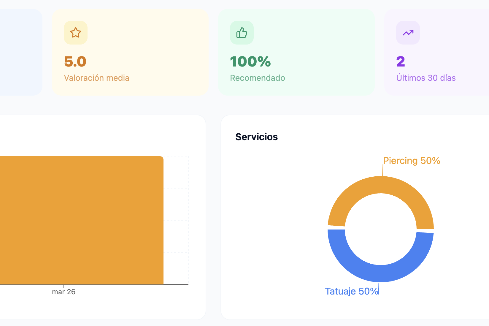 InkTrust está pensado exclusivamente para estudios y artistas de tatuaje, piercing y micropigmentación, con un sistema de reseñas adaptado a tu realidad. Tus clientes valoran atención, instalaciones y resultado final, y esa información se transforma en un perfil profesional, un sello visible y una insignia de confianza. Además, cuentas con un panel para responder reseñas, reportar las sospechosas y generar enlaces, sellos y QR que te ayudan a conseguir opiniones de forma constante.